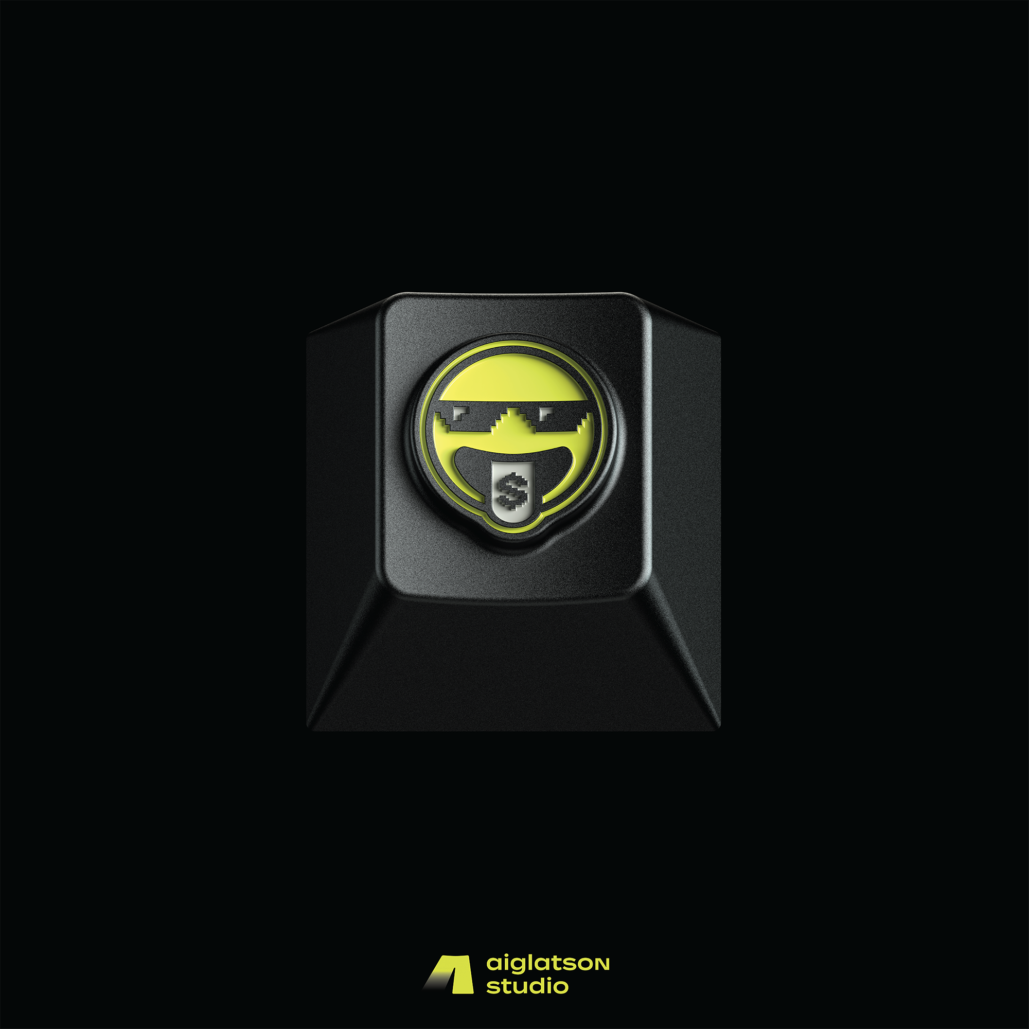 The overall color scheme sticks to sleek black and gray, with pops of neon yellow to keep things fresh and eye-catching. For the iconic keys, we picked a lineup of lively expressions and playful symbols, creating a bold and energetic visual contrast.
